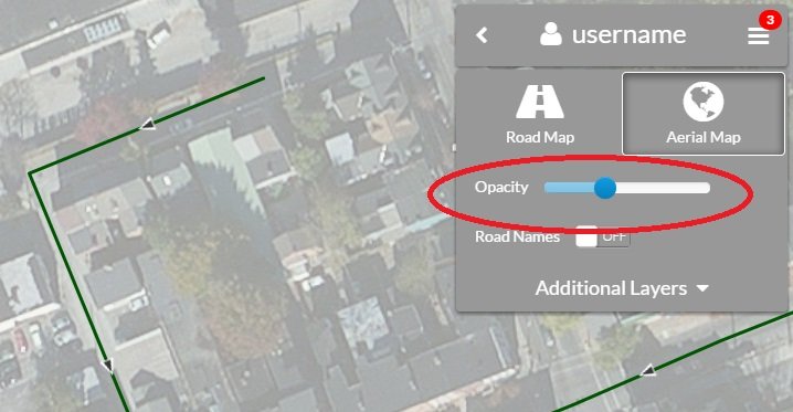 - You can adjust the opacity of aerial imagery. This will allow you to clearly view a darker asset (like sanitary sewer) with the imagery.