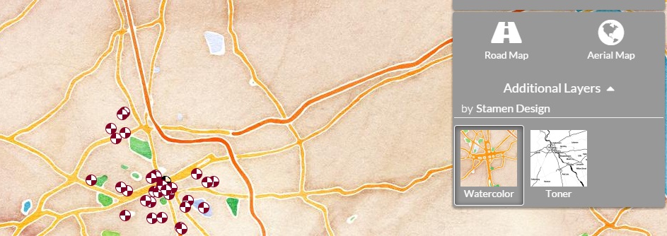 - We simply love what Stamen is doing with map presentation. Now you can view their Toner or Watercolor maps too.