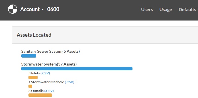 To do so, navigate back to the main menu (after you first login) and click on the 'Account' link. After that - click on the 'Usage' link and you'll see an expandable list of your mapped assets (shown above).